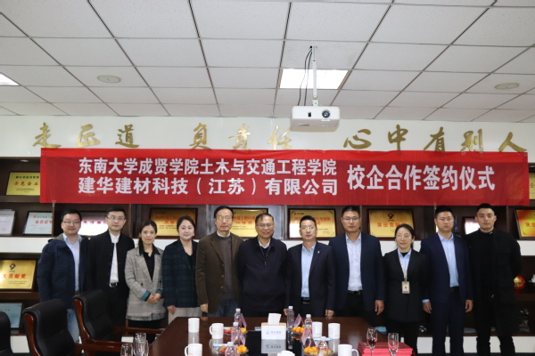 在签约仪式上,欧阳小星总经理对来访的土木与交通工程学院的各位领导、老师表示欢迎,他表示建华建材科技(江苏)有限公司作为国内知名的混凝土制品与技术综合服务商,提供从地下基础工程到上部结构工程的全流程产品,公司一直致力于促进行业创新发展,推动科技成果转化。他希望通过本次校企合作签约,加强与高校间的交流合作,在PC部件设计、制作等方面与土木与交通工程学院师生团队开展研发合作,并为在校生提供实习、实训场所,在实训中不断提升工程实践能力,提升专业素养。郭正兴院长对建华建材科技(江苏)有限公司各位领导的热情接待表示感谢,并围绕学院创建“江苏省一流专业”,向与会领导介绍了学院在专业建设、师资队伍建设、人才培养以及校企合作等方面的情况,希望加深与建华建材科技(江苏)有限公司的合作。最后郭正兴院长与欧阳小星总经理共同签订了校企合作协议,双方约定聘请郭正兴院长为建华建材科技(江苏)有限公司特约顾问;在土木与交通工程学院设立“建华奖学金”,用以资助热爱祖国、品学兼优的在校学生;将建华建材科技(江苏)有限公司设为今年会官网土木与交通工程学院校外实习实训基地。