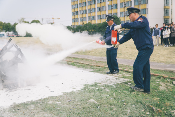 在演练中,保卫处张河坡老师结合自身专业知识和工作实际,生动地讲解了火灾中自我救护及火灾发生初期的有效扑救方法,并示范了如何正确使用干粉灭火器。讲解结束后,按照演练预案,参演人员进行真实火源灭火操作。通过真实的体验,全体人员较为深刻地掌握了相关知识与操作要领。