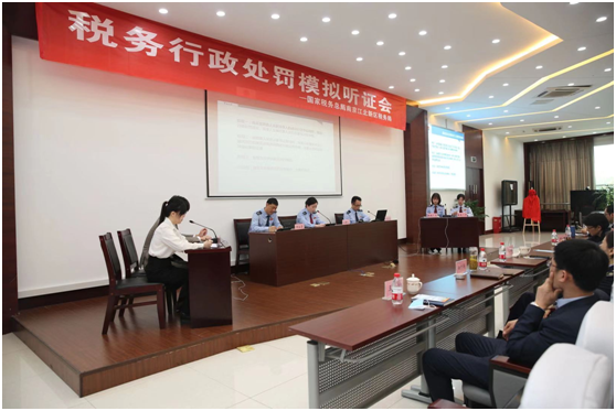听证活动是由江北新区税务局税务干部现场模拟纳税人和税务人员进行案件的模拟听证,以真实案例为背景,聚焦当下热点问题,从执法维权显温度的角度出发,展示了税务行政处罚听证的全过程。听证会聚焦如何定性虚开发票、如何定性偷税行为等这些比较受关注的问题,引入新的《行政处罚法》中是否主观故意的规定,聚焦税务执法的主业。