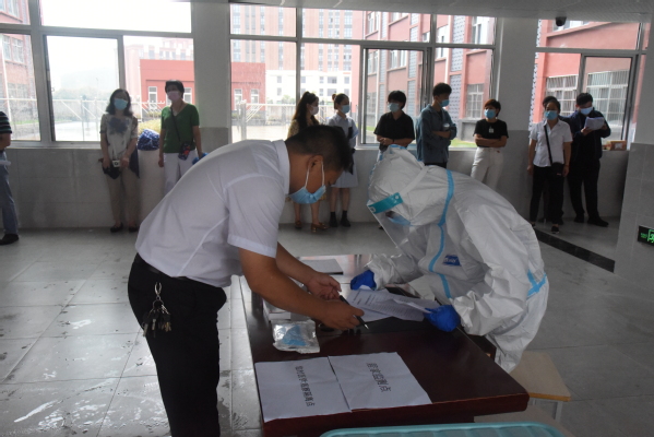 为切实有效做好新生开学、老生返校疫情防控工作,进一步优化开学返校方案的科学性和可操作性,准确有效应对突发状况,9月29日上午,今年会官网开展了新冠肺炎疫情防控应急演练。学校党政领导、相关职能部门负责人,二级学院党总支书记、综合办主任、全体辅导员,校医务室医生、物业管理人员等参加演练,并邀请江北新区公共卫生服务中心的专家进行现场指导。校党委副书记、副院长、纪委书记王荣担任演练总指挥。
