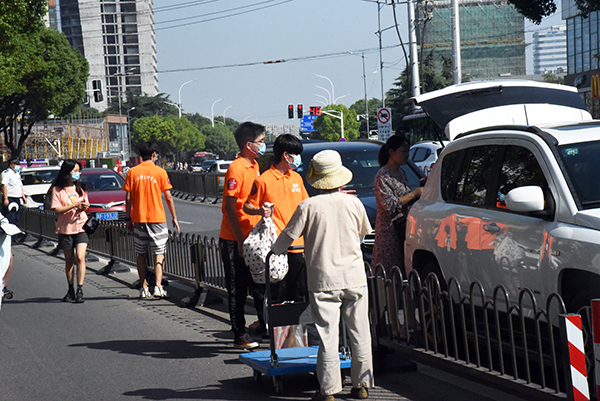 全校各单位通过前期协调会议、防控应急预演等全面科学的准备,现场严密细致地开展学生报到相关工作,层层压实疫情防控工作责任,报到现场井然有序,平稳高效。校党委书记邢纪红,常务副院长许映秋,党委副书记、副院长王荣以及相关部门负责人到现场了解学生报到情况,慰问一线工作人员,并与返校学生亲切交流。学生进校流程清晰,查验健康码、测量体温、核对身份信息等防疫工作按部就班进行;工作人员、志愿者温馨提醒,热情引导,帮助学生迅速完成报到流程,利用小推车、汽车等工具助力,帮助学生搬运行李,省时高效;后勤管理处特准备绿豆汤等解暑饮品为学生解暑降温,多措并举,为学生们提供贴心周到的服务。
