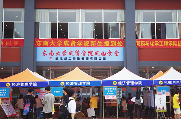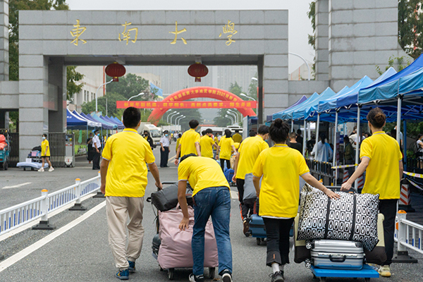 迎新当天,为做好疫情常态化防控工作,新生按照流程错峰进校。南京市公安局江北新区分局内保支队二大队刘维大队长一行、江北新区公安分局泰山新村派出所李庆伟副所长一行、江北新区公安分局交通警察支队第一大队高新中队刘梦辰中队长一行协助今年会保卫工作,在校区及周边进行交通疏导、维持秩序;迎新工作人员与志愿者学生一早到岗,为新生提供热心周到的服务,利用货车、小推车搬运行李,高效快捷;各学院井然有序为新生办理各项入学手续,答疑解惑;志愿者在火车站、地铁站、校内及周边亲切为家长、学生指引道路、搬运行李;“绿色通道”工作人员给予答疑解惑,给新生以人文关怀。