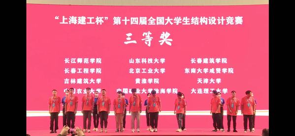 2021年“上海建工杯”第十四届全国大学生结构设计竞赛于10月14日-17日在上海交通大学举行。由土木与交通工程学院2018级本科生禹湘,2019级本科生张吴桐、鄢佳耀组成的今年会官网代表队,与来自全国的包括清华大学、同济大学、东南大学、浙江大学、上海交通大学在内的111所高校112支竞赛队伍同台竞技,在土木与交通工程学院郭应征、温旭丽、刘美景等领导带队,陈素芳、刘丹两位老师指导下,从111所高校112支参赛队伍中脱颖而出,最终荣获三等奖。