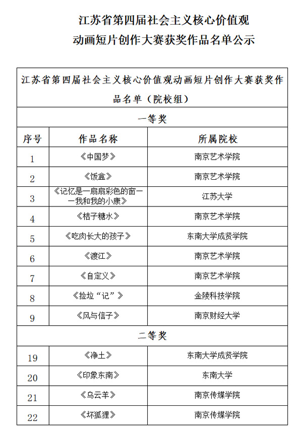为深入学习宣传贯彻习近平新时代中国特色社会主义思想,大力弘扬社会主义核心价值观,加强院校课程思政建设,推出一批短小精悍、思想精深、艺术精湛、制作精良的优秀动画作品,江苏省广播电视局、江苏省教育厅特联合举办江苏省第四届“社会主义核心价值观动画短片创作大赛”