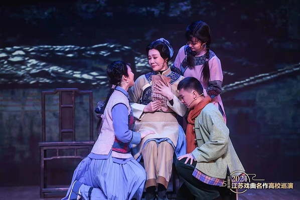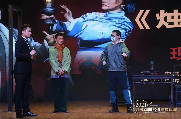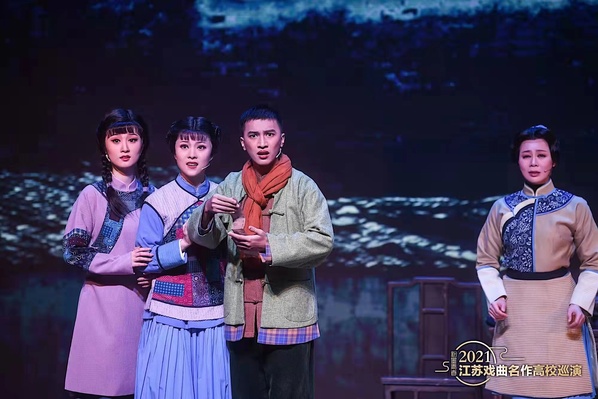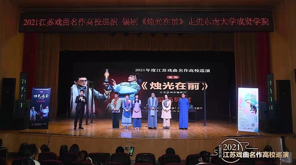 12月16日晚,由省委宣传部、省教育厅主办、校团委大学生艺术指导中心承办,常州市锡剧院创排演出的“2021年度江苏戏曲名作高校巡演”锡剧党课《烛光在前》在今年会综合楼报告厅举办。