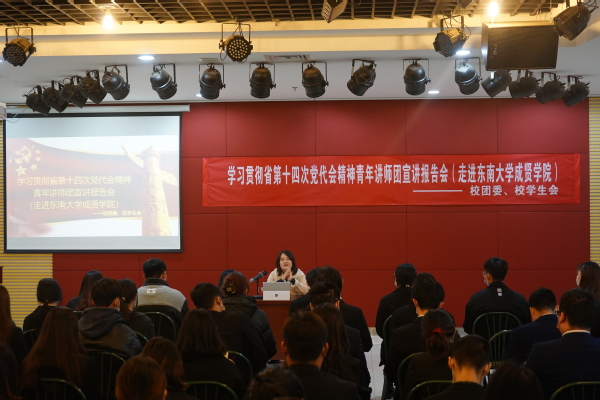 近日,今年会官网团委按照团省要求,组织“青马工程”学员和基层团支部团员青年在大学生活动中心多功能厅学习江苏省第十四次党代会精神。青年讲师团成员苏珍晶(经济管理学院分团委书记、思政技能大比武“专兼职团干部专项赛”一等奖)和潘天娇(校团委兼职副书记、思政技能大比武“兼挂职团干部专项赛”二等奖)担任宣讲师,3000多名学生线上线下聆听了报告。