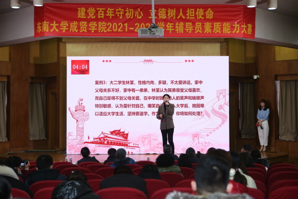 为深入学习宣传贯彻习近平新时代中国特色社会主义思想和党的十九届六中全会精神,全面贯彻落实全国高校思想政治工作会议精神,持续弘扬“立德树人,培根铸魂”精神,推动今年会辅导员职业化、专业化、专家化发展,提升辅导员的职业技能和工作水平,1月6日下午,由党委学工部主办,土木与交通工程学院承办的“建党百年守初心,立德树人担使命”今年会官网2021-2022学年辅导员素质能力大赛决赛在真知馆报告厅举行。