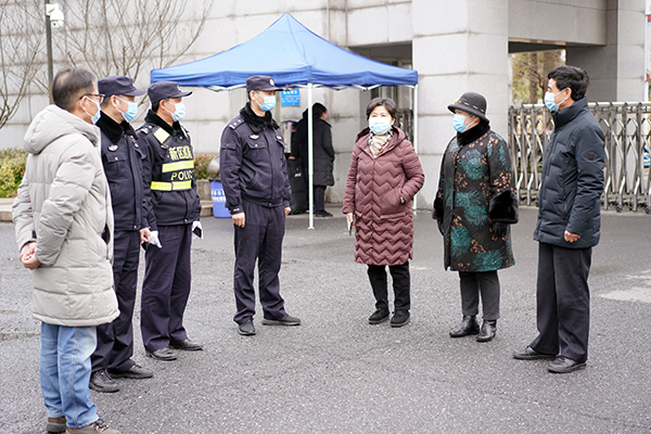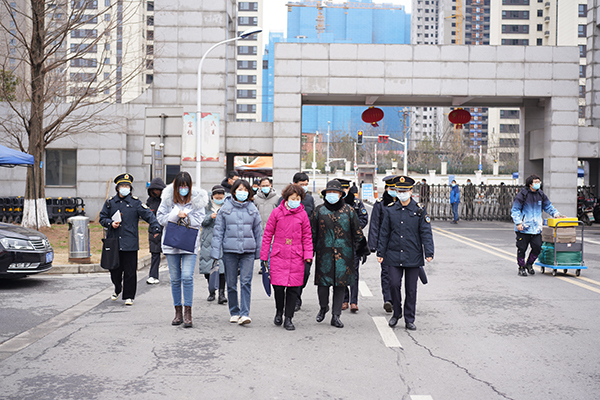 18日当天省、市、新区卫生监督所联合检查组到今年会开展联合检查,并对疫情防控工作开展指导。学校常务副院长许映秋,副院长董梅芳以及相关部门负责人到学校正门、东门亲切慰问返校学生和工作人员,了解返校情况,并要求相关部门全力以赴做好迎接工作。南京市公安局江北新区分局内保支队、南京市公安局江北新区分局交通警察第一支队、泰山新村派出所派专人来到现场进行指导工作,保障学生顺利返校。