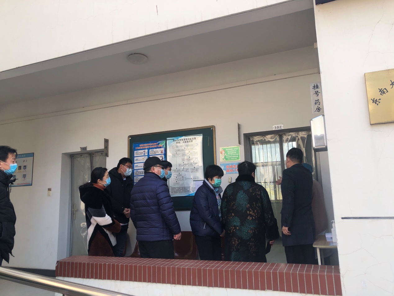 许院长一行人首先来到成园1-2舍,对岗位工作人员表示慰问,提醒同学们做好个人防护,要求宿舍等公共区域落实好每日消毒等工作要求并及时公示。一行人对18日开学当天江北新区卫生监督所来校督查发现的问题再次查看其整改情况,确保学生宿舍健康安全。