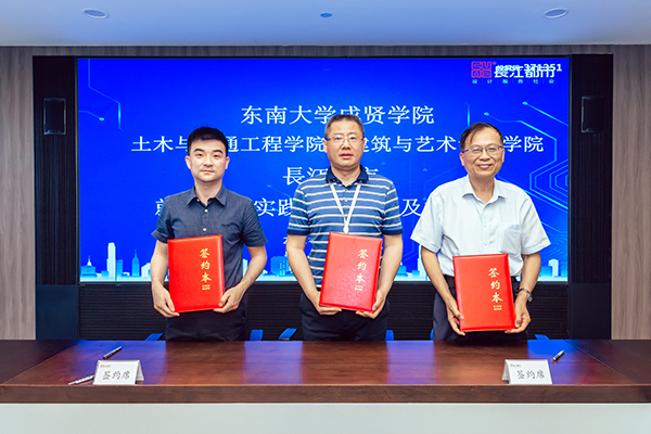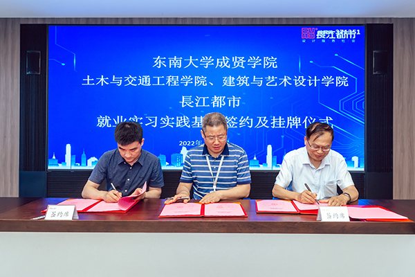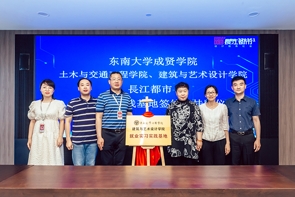 人力资源部经理刘友存则向与会领导、老师介绍了从2013年起入职长江都市的19位成贤校友的职业发展情况,他们在结构设计、建筑设计、室内设计、环境设计等多个岗位,展现了成贤学子扎实的专业功底和良好的综合素质,为企业的快速发展贡献了自己的青春智慧。科研技术管理部经理韦佳以《坚持“双创”战略驱动持续发展——长江都市设计创优与科技创新》为主题,介绍了长江都市从传统的设计企业向工程设计与科技创新相集合的科技企业的转型之路,介绍了企业近年来在绿色建筑与装配式建筑、办公建筑的创新应用、科研课题与技术研究等方面所取得的成果。随后土木与交通工程学院院长郭正兴、建筑与艺术设计学院党总支副书记邵叶鑫,分别代表两个学院与南京长江都市建筑设计股份有限公司总经理董文俊签订了《就业实习实践基地协议书》并挂牌“今年会官网就业实习实践基地”。
