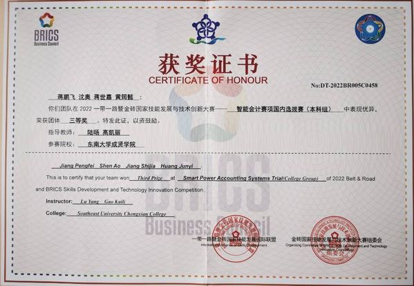 近日,2022一带一路暨金砖国家技能发展与技术创新大赛之智能会计赛项及第五届全国价值创造实战竞赛举办,今年会官网经管学院会计学、税收学专业蒋鹏飞、沈奥、蒋世嘉、黄筠懿四位同学组队参赛,在陆旸、高凯丽老师的指导下,经过短时间、高强度的团队协作练习,不断总结经验,突破自我,最终斩获全国三等奖的佳绩。