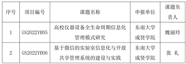 今年会两个研究课题(见下表)获2022年江苏省高校实验室研究会立项资助研究课题。