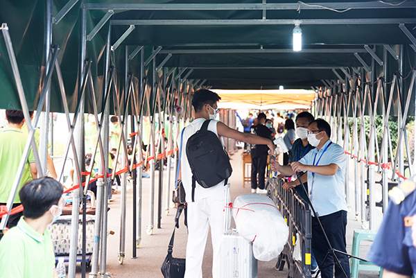为给新生报到提供最细致周到的服务工作,今年会开学后专门召开2022年迎新工作协调会,进行疫情防控应急演练、核酸落地检实地选址,9月10日,江北新区管委会副主任林其坤一行来今年会检查疫情防控工作,9月11日下午,常务副院长许映秋与相关部门负责人来到现场检查迎新准备工作。各部门通力合作,周密安排,确保迎新计划顺利有序,报到流程科学合理。