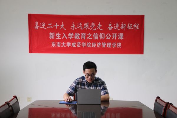 923日,经济管理学院特邀南京工业大学马克思主义学院副教授、硕士生导师滕飞老师为2022级新生讲授开学第一课。学院党总支副书记李清源、综合办主任程希羲、新生辅导员及全体2022级学生在线聆听了讲座。