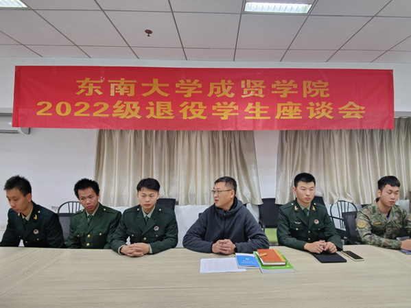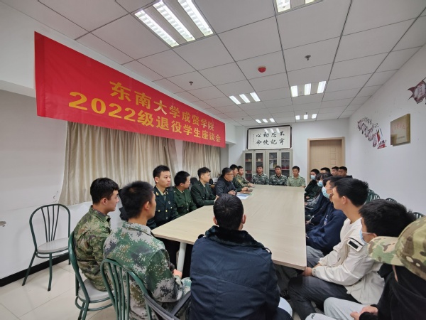 座谈会上,团委书记潘明烽介绍了2022年今年会退役学生基本情况,今年共退伍23人(女兵3人),对复学后培养方案的变化、课程重修、学分置换、第二课堂各项目的参与实践等作了介绍和提醒,并对退役学生后期就业、考研和其他方面的工作给同学们作了介绍和解答,希望同学们回校后尽快转变角色,主动适应大学生活,做好职业生涯规划,继续保持新时代青年士兵在部队养成的良好习惯和品质,刻苦学习专业知识,继续发扬部队的优良传统和作风,争做表率,保持先进,争当标兵,不辜负部队的培养,不辜负学校的期望,积极面对学习、生活、工作中的挑战,做到退伍不退志、退伍不褪色,牢记新时代赋予的新任务,在新征程有新作为,为学校和社会的发展贡献自己的青春力量。退役学生事务学生干部介绍了近几年退役学生回校后在国防教育、征兵宣传、退役学生服务、民兵训练、国旗班训练、服务学生等工作上的情况,并鼓励退役学生积极加入学生组织服务锻炼,永葆奋发向上,砥砺前行的精神品质,充分发挥退伍军人在高校中的榜样作用,积极传播正能量,让“最美退役军人”成为引领风尚的时代标杆。
