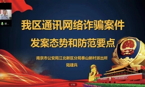 安全教育。学院邀请江北新区公安分局泰山新村派出所陆建兵警官开展预防通讯网络诈骗安全教育专题讲座;党总支副书记邵叶鑫针对近期校内发生受骗学生案例进行线上讲座;各班级专题学习反诈防骗知识,新生辅导员领学并组织填写《今年会官网防范电信网络诈骗承诺书》。组织全体新生观看《提高警惕防范网勾》,增强学生反间谍安全防范意识。