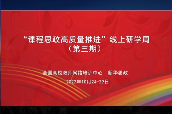 为全面推进今年会课程思政高质量建设,打通专业教育和思政教育的“最后一公里”,10月24日-29日,全国高校教师网络培训中心和新华网共同主办了“课程思政高质量推进”研学周(第三期)专题培训。教师发展中心选派今年会9名骨干教师参加了此次培训。