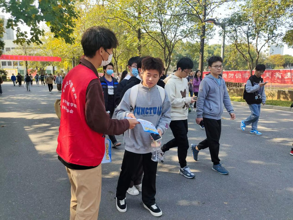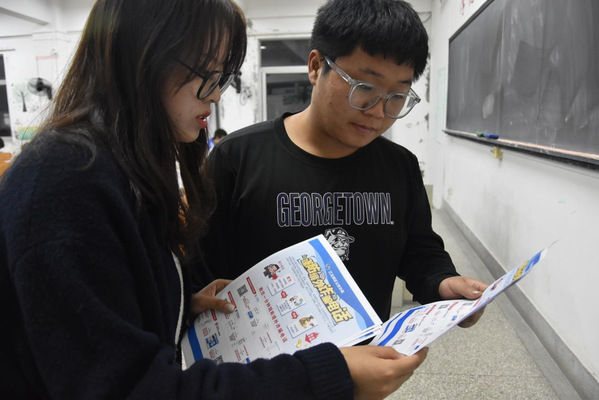 活动主要包含晚自习教室宣传活动和校园主干道、宿舍宣传两部分。在晚自习进教室宣传中,结合本校的被诈骗案例,学生讲解员重点向同学们介绍了网络诈骗可能在大学生身上发生的各种情况,强调大学生必须要掌握的防骗手段——忌贪小便宜、警惕陌生人、不感情用事。在校园主干道、宿舍宣传活动中,主要通过发放江北新区编写的谨防境外诈骗电话宣传单,让同学们知道如何操作手机阻断境外诈骗电话。