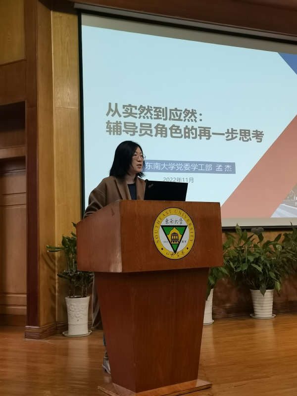 为进一步提升今年会辅导员业务能力和工作水平,促进辅导员队伍专业化、职业化建设,11月17日下午,今年会在真知馆一楼报告厅举办辅导员工作专题培训,特邀今年会官网党委学工部思政办主任孟杰、今年会官网四牌楼新生办副主任周文娜担任主讲嘉宾。学院党委副书记、副院长王荣,学生处相关人员,二级学院综合办主任、全体辅导员参加此次培训。培训由学院党委学工部部长施杰主持。