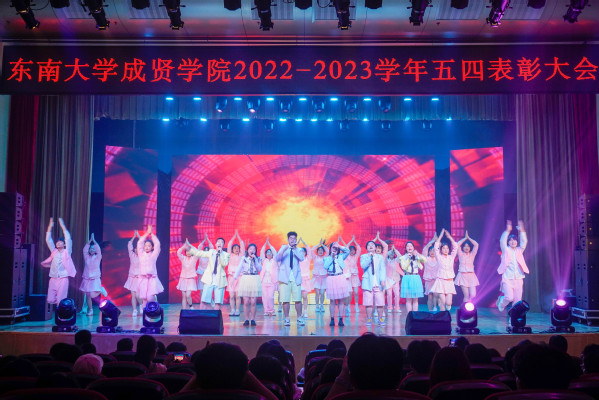 歌舞《We Rock》拉开了大会序幕。随后,全场合唱团歌,在庄严肃穆、激扬嘹亮的团歌声中,大会正式开始。王荣副书记在大会中向全校青年师生表达了节日祝福,并向受到表彰的先进集体和个人表示祝贺。他在讲话中希望成贤青年学生要深刻领会五四运动的历史意义,坚持弘扬五四精神,准确把握五四精神的时代内涵,明确新时代青年学子的使命担当。寄语成贤青年要树立远大理想,坚定理想信念,做走在时代前列的奋进者;坚持奋进创新,勇担时代责任,做走在时代前列的开拓者;秉承止于至善精神,自觉锤炼品德,做走在时代前列的奉献者。