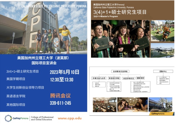为进一步拓展今年会学生国际化视野,充分调动学生参与国(境)外交流项目的积极性,5月10日中午,校发展合作处邀请美国加州州立理工大学(波莫纳)以腾讯会议形式举行国际大学生项目宣讲会。美国加州州立理工大学(波莫纳)全球教育交流学院主任薛亚萍博士及高级项目负责人王英川经理面向今年会学生进行了赴美交流项目宣讲。来自各学院的 200多名学生在线参加了此次活动。