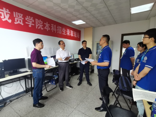 在招生录取现场,学校领导认真听取了招生工作办公室负责人关于录取工作安排、生源情况等方面的汇报,询问了今年会招生录取工作进程等情况。