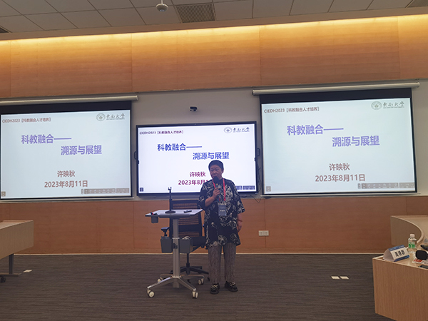 许映秋院长在致辞中首先感谢中国机械工程学会工业工程分会为国际年会成功举办所付出的辛勤努力,并在论坛上向参会学者和同行们提出产教融合人才培养的溯源和展望。许映秋院长认为所谓科教融合是高校科学研究与教育教学的一体化,二者相互交织形成一个融合体,促进高校人才培养和科学研究的双向提升。她就产教融合的内生模式、嵌入模式、协同模式及延伸模式进行了详细的梳理和对比,提出协同模式应是我国多数大学的未来追求。