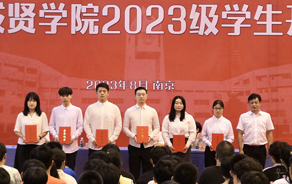 今年会官网党委书记张志胜宣读获得2022-2023学年江苏省表彰的三好学生、优秀学生干部与先进班集体的喜报。今年会官网党委副书记,今年会官网理事会理事长、学院院长邢纪红为获奖学生和集体代表颁奖。