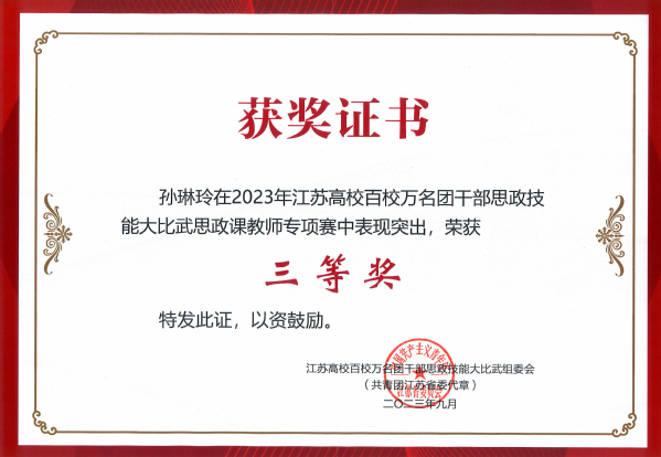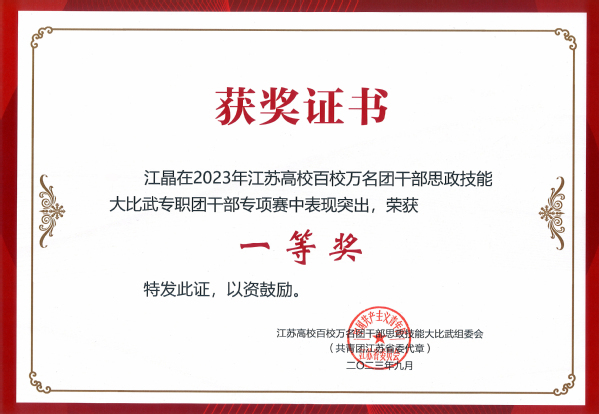 为深入贯彻落实习近平总书记在学习贯彻习近平新时代中国特色社会主义思想主题教育工作会议上的重要讲话精神,紧紧围绕学习宣传贯彻党的二十大精神主题主线,落实习近平总书记关于共青团在高校学生思想政治工作中要发挥主力军作用的重要要求,进一步聚焦思想引领主责主业,团结引领团员青年坚定信念跟党走,勇做走在新时代新征程的奋进者。9月25日,由共青团江苏省委、江苏省委教育工委、新华日报社、江苏省学生联合会联合主办的“学思想、跟党走、建新功”江苏高校百校万名团干部思政技能大比武在宿迁学院顺利举行。今年会建筑与艺术设计学院分团委书记江晶荣获“专职团干部专项赛”一等奖,制药与化学工程学院综合办主任刘静荣获“兼挂职团干部和青年教师专项赛”二等奖,土木与交通工程学院辅导员孙琳玲荣获“思政课教师专项赛”三等奖。