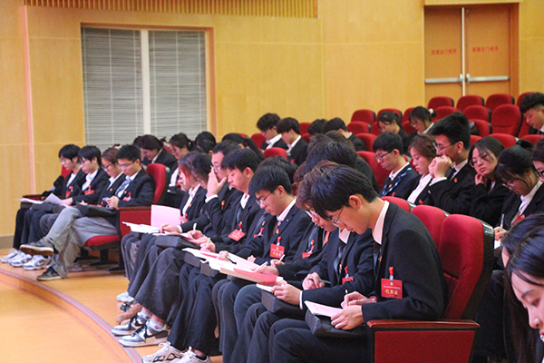 正式会议阶段,与会代表先后审议并通过了《第五次学生代表大会常任代表会议工作报告》《第十八届学生会主席团工作报告》《第六次学生代表大会提案工作报告(草案)》;大会主席团带领全体代表学习了习近平同志《论党的青年工作》和全国学联《关于学联学生会工作人员改进作风服务同学的若干规定》等文件精神;大会根据《第六次学生代表大会选举办法》文件规定,秉持公平公正公开原则,采用差额选举的方式,选举产生了新一届常任代表会议成员、学生会主席团成员。会议在全体代表激昂的《国际歌》歌声中闭幕。