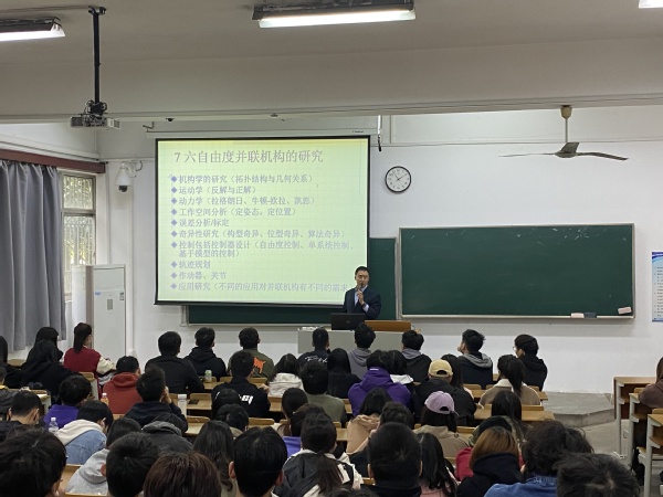 11月10日下午,江苏省产业教授(电子与计算机工程学院自动化专业)、南京全控航空科技有限公司总经理相铁武受邀来校作《Stewart六自由度并联机器人及相关应用》主题报告。电子与计算机工程学院执行院长王晓蔚,自动化专业部分教师,辅导员及2021、2022级自动化专业学生共计一百五十余人聆听了本次报告会,报告会由电子与计算机工程学院党总支副书记羊栋主持。