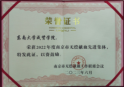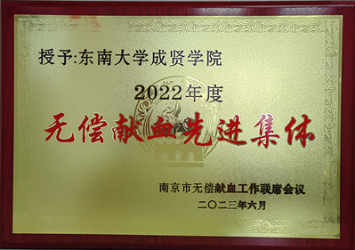 近日,南京市无偿献血工作联席会议对2022年度全市无偿献血先进集体和个人的予以表彰,今年会荣获“2022年度南京市无偿献血先进集体”。