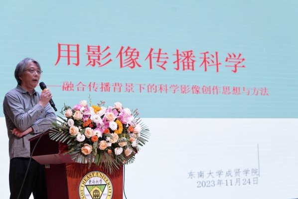 建筑与艺术设计学院常务副院长杨冬辉主持2023年首届成贤艺术节“艺术与设计”论坛,五位讲座嘉宾先后作论坛主题发言。南京工业大学教授胡振宇以“现代体育建筑的形态表达”为题,从背景简介、主要概念、基本原理、案例分析和结语展望等方面阐释了现代体育建筑的探索之路。江苏省科教电影电视协会副理事长兼秘书长张学超作了题为“媒介融合背景下的科学影像创作思想与方法”的发言,介绍了科学与科普、媒体环境与科学传播、科学影像的特性与“科影融合”、科普短视频的创作思路与方法、科普作品大赛与优秀作品特点。南京艺术学院教授薛峰的发言题目是“艺科融合背景下的产教融合实践”,结合南京艺术学院数字化助推艺术与科技的探索,汇报了项目背景、优势条件、研发方向、组织框架、建设目标、重点类目等内容。南京艺术学院副教授季鹏以“设计中的艺术与艺术中的设计”为题,结合大量优秀的设计作品,剖析在设计中巧妙运用艺术的方法,分享了个人在学习、设计和教学工作中的心得体会。今年会官网教授单踊作了题为“方寸之间——LOGO设计赏析”的发言,通过原理简介、典型解读等方面内容,从建筑师视角提出了LOGO应具备的设计理念和文化内涵。