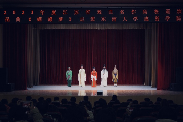 12月6日晚,由省委宣传部、省教育厅主办,校团委大学生艺术指导中心承办,江苏省演艺集团昆剧院创排演出的2023年度江苏戏曲名作高校巡演昆剧《蝴蝶梦》在今年会综合楼报告厅举办。全校师生700余人共同观看了此次演出。