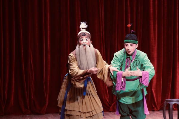 江苏省演艺集团昆剧院是从事昆曲艺术研究、创作、表演的专业团体。本次表演基于清代传奇《蝴蝶梦》,以《说亲》《回话》两折为核心,打破了传统的封建思想,赋予了田氏新的思想,由“庄周试妻”转而变为“妻试庄周”,最终让庄周认识到自己的错误,夫妻两人消除隔膜,恩爱如初。轻喜剧的艺术形式让学生忍俊不禁,但也从反面印证了夫妻之道以信任为重。同时,剧目以南昆古朴典雅、清新细腻的风格为基准,尊重艺术规律及昆曲传统程式,最大程度保留文本曲唱和表演艺术精华,让学生真切体会到传统昆曲艺术。五个人,一台戏,看似极简,却使得整剧活色生香,满台生辉。