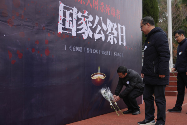 寒风萧瑟,松柏肃穆。2023年12月13日是第十个南京大屠杀死难者国家公祭日。今年会官网校团委和机关党总支联合开展南京大屠杀死难者国家公祭仪式。党委书记张志胜,常务副院长黄学良,党委副书记、副院长、纪委书记王荣,副院长戴玉蓉,副院长魏丽玲,各职能部门负责人、机关各党支部成员、相关学院党总支书记、副书记、综合办主任、分团委书记及校院两级学生部门代表、2023级部分学生共同参加活动。