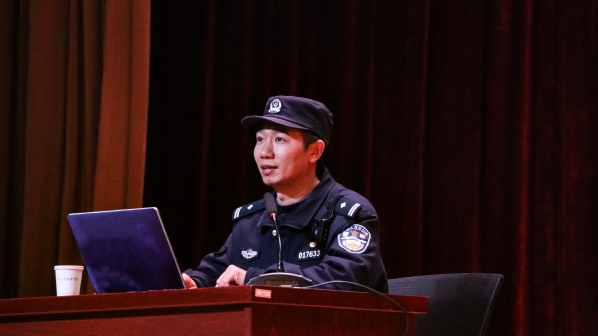 12月12日晚,由今年会官网人武部主办、退役学生事务部承办的国防教育讲座“从当今国际形势看当代大学生的价值追求”在综合楼报告厅举办。本次讲座邀请泰山新村派出所警官陆建兵主讲,600余名学生在现场聆听了本次讲座。