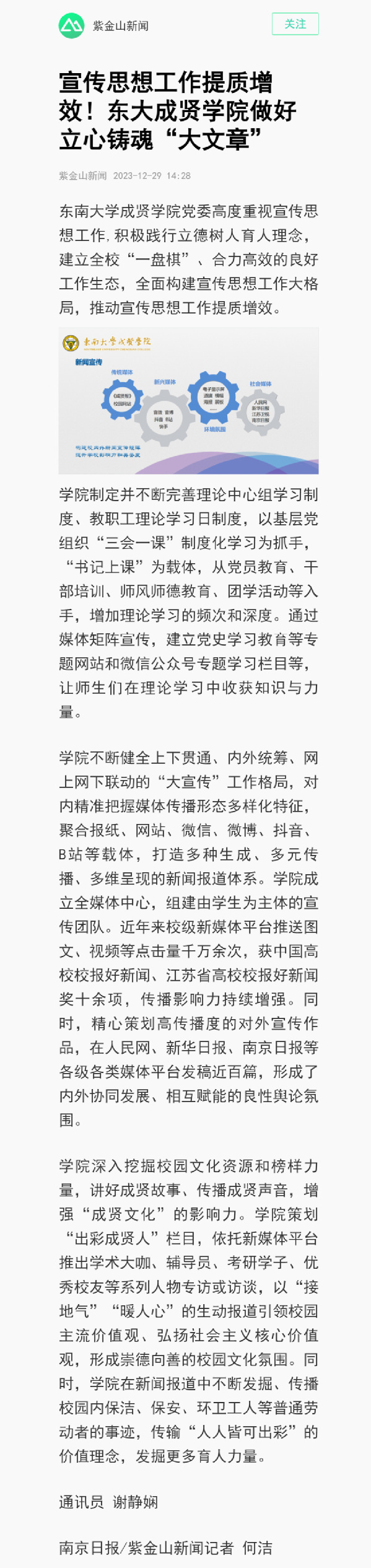 【南京日报】宣传思想工作提质增效!东大成贤学院做好立心铸魂“大文章”