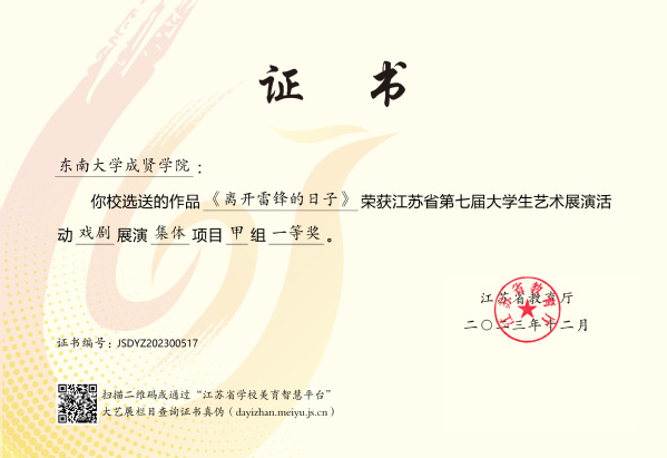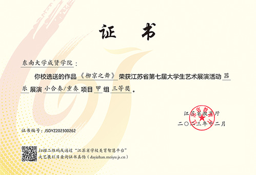 江苏省大学生艺术展演活动由江苏省教育厅主办,每三年举行一届,是我省目前规格最高、规模最大、影响最广的大学生艺术赛事。本届展演活动自启动以来,学校领导高度重视,校团委、大学生艺术指导中心精心筹备、组织召开工作协调会,指导教师与参赛学生们锐意进取、全力以赴,以高度的责任感和饱满的参赛热情打造具有成贤特色的高质量艺术作品,充分彰显了今年会美育工作的育人实效和成贤学子昂扬向上、朝气蓬勃的青春风采。
