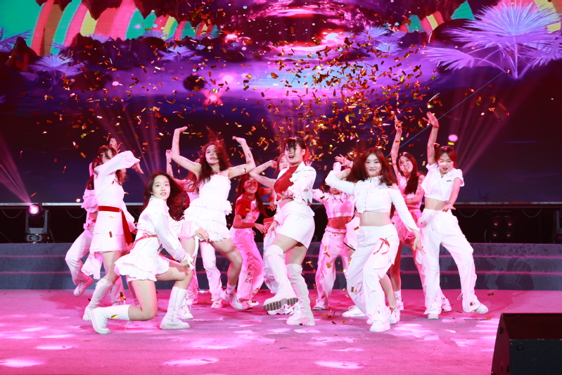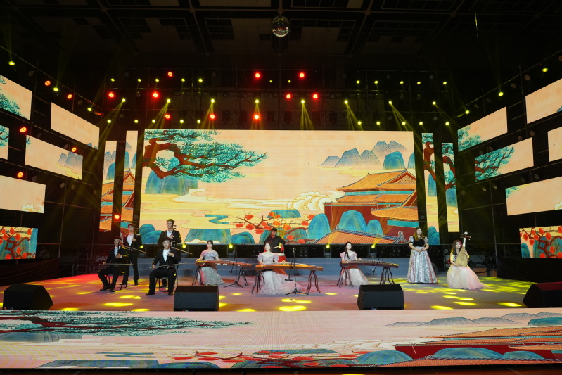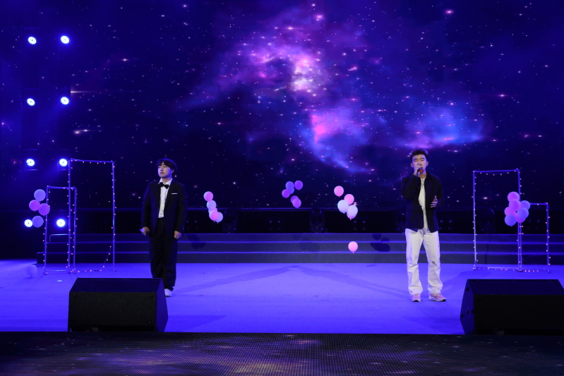 晚会分为15日、16日两场演出,在灯光秀和开场舞蹈《we rock》《yes ok》的欢快旋律中拉开帷幕。歌曲串烧《门》《永不失联的爱》《天黑黑》等余音绕梁;舞蹈《面纱》、说唱《麒麟》节奏充满力量,舞姿潇洒利落;歌舞《逐梦》、合唱《有我》献给一代代不负时代重托的中国青年;民乐《象王行》展现气吞山河的磅礴景象;小品《反诈银行》诙谐幽默地讲述真实诈骗案例;舞蹈《只此青绿》以“青绿”彰显中华之美,用舞蹈绘就《千里江山图》;舞台剧《穿越时空的电台》跨越时空共享《歌唱祖国》诞生的幸福;音诗画《忆江南》将多种艺术形式融入《富春山居图》山水意境;民舞《唐宫夜宴》惟妙惟肖,带领观众穿越千年时光,共赴唐宫夜宴,晚会中时装秀、社团秀、退伍学生欢迎仪式以及招生视频、军训视频播放等环节形式丰富、内容精彩,现场不时响起雷鸣般的掌声与喝彩声。晚会最终在意气风发的歌舞《New Youth》里结束,在场领导、老师和演职人员合影留念,为本场活动画上了圆满的句号。