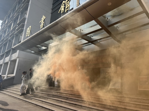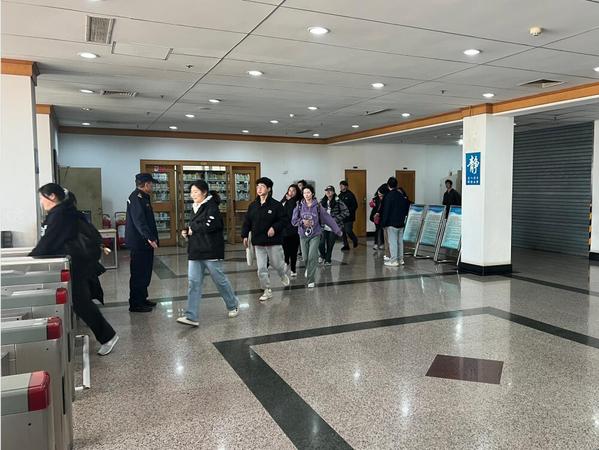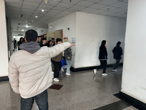随着馆内警报声的响起,消防卷帘门等消防设施启动,工作人员迅速引导、组织在馆读者用湿毛巾、手帕等捂住口鼻有序通过全馆各安全出口进行疏散。到达馆外指定安全位置后,工作人员对疏散人员的身体及心理状态进行了询问和关心。整个演练过程真实模拟了图书馆发生紧急情况后的应急疏散流程,测试了图书馆相关消防设施设备的运行状态,检验了工作人员应急处置能力的掌握情况。演练前,保卫处对图书馆工作人员进行了灭火器和消火栓的使用培训和消防知识宣教。