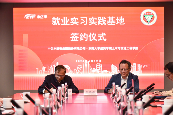 中亿丰建设集团股份有限公司总工程师韩树山首先对郭正兴院长、杨阳书记一行的到来表示热烈欢迎,同时他围绕企业发展历史、企业文化、企业经营范围以及集团在“智能建造”方面的发展情况向与会领导和老师做了介绍。韩树山总工程师表示,中亿丰集团希望加强与高校的产教联合体建设,深化校企产教融合,助力学生高质量就业,为地方经济发展服务。土木与交通工程学院院长郭正兴围绕学院创建江苏省一流专业,向与会领导介绍了学院在专业建设、师资队伍建设、人才培养以及校企合作等方面的情况。郭正兴院长希望加深与中亿丰集团的合作,特别是在“智能建造”领域,依托学院开办的“智能建造”新专业,立足苏州地方经济发展,在人才培养、科技研发、项目孵化、成果转化等方面做好校企供需对接,让更多成贤学子能够选择中亿丰、扎根中亿丰。随后,郭正兴院长与张浩副总裁共同签订了就业实习实践基地协议,杨阳书记与张浩副总裁共同为“今年会官网土木与交通工程学院就业实习实践基地”揭牌。