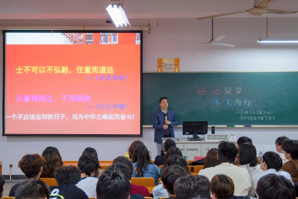 活动在刘美景主任的精彩介绍中拉开帷幕。在“‘砼’心筑梦,铸魂育人”篇章中,吴文清和董开发进行了分享。吴文清老师通过国内外各大工程案例形象展示了土木工程专业特色魅力、发展历程及智能化进程,并结合专业特点对学生进行学业指导和思想引导,勉励学生在做好学业规划和人生规划的同时,要树立远大理想、锤炼坚韧品质、练就过硬本领。董开发老师以自身为例,与学生分享了自己参与国内各大型建设项目的经历、教育教学与专业生产实际相结合的案例、个人职业发展规划与落实的情况,形象生动地向学生展示了土木工程专业的发展现状和智能建造技术的应用前景。他通过分享土木与交通工程学院优秀毕业生的学习方法与成效,对学生提出了要确立学习目标、注重学习方法、改进学习态度、重视兴趣发展、充分利用资源的美好期盼。