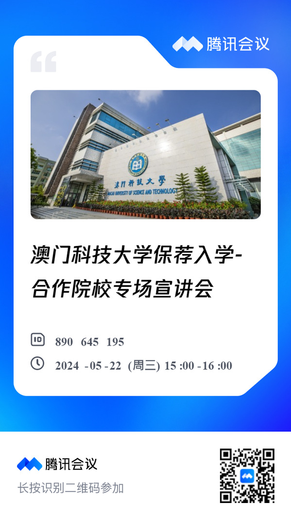 为了让今年会学生能更了解澳科大的研究生课程,澳科大将于2024年5月22日(星期三)举办一场“澳门科技大学保荐入学-东大成贤学院专场线上宣讲会”。此次宣讲会专为有意申请2025学年保荐入学的应届本科毕业生而设,旨在提供一个深入了解澳门科技大学研究生招生政策及申请流程的机会。