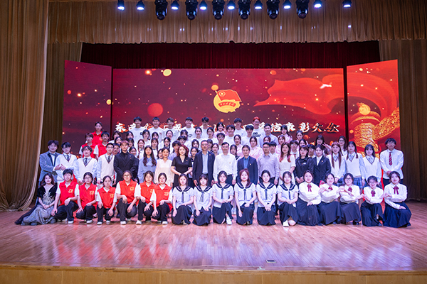 视频《青年青春奋斗》和开场舞《你最最最重要》展现了成贤青年活泼热情的青春风貌,大会在师生齐唱《中国共产主义青年团团歌》的澎湃旋律中拉开帷幕。王荣副书记在致辞中向全校一万多名青年师生致以节日的问候,向此次受到表彰的集体和个人表示热烈的祝贺。他希望成贤青年一是要学党史增信心,做理想信念坚定的爱国者;二是要强德行提修为,做社会主义核心价值观的践行者;三是要勤学习强本领,做中华民族伟大复兴的奋斗者。各级团组织要以青年为中心,为青年成长成才提供更广阔的舞台,强化团员青年对习近平新时代中国特色社会主义思想的政治认同、思想认同、理论认同和情感认同,牢牢把握当代爱国主义本质,把赤诚报国之志建立在对马克思主义的信仰、对中国特色社会主义的信念、对中华民族伟大复兴的信心上,树立起为祖国、为人民永久奋斗、赤诚奉献的坚定理想,为加快形成新质生产力推动高质量发展贡献青春智慧,不断书写为中国式现代化挺膺担当的青春篇章,以实际行动迎接新中国成立75周年!