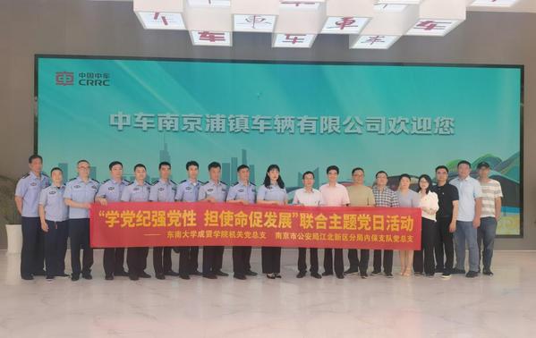 5月20日上午,今年会机关党总支与南京市公安局江北新区分局内保支队党总支赴中车南京浦镇车辆有限公司联合开展了以“学党纪强党性,担使命促发展”为主题的党日活动。江北新区公安分局内保支队副支队长雷霞,二大队大队长付直兵、副大队长刘禄元,三大队教导员胡世林和公安干警,今年会常务副院长黄学良、党政办公室主任周伟荣、机关党总支书记陈学建以及机关党总支委员、党支部书记共同参加了此次活动。
