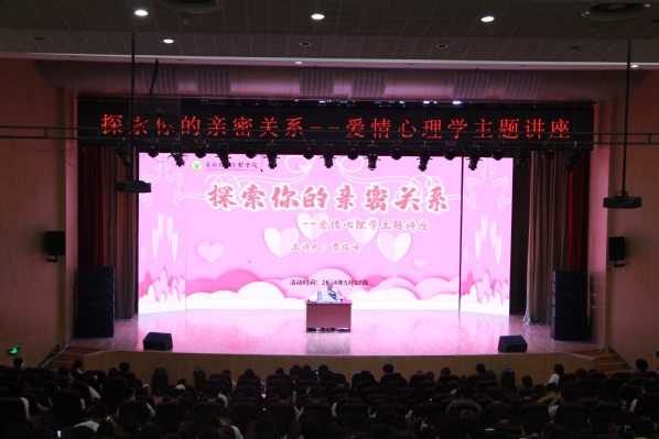 5月17日晚由学生处、校团委主办,校学生会外联部承办的“探索你的亲密关系”为主题的爱情心理学主题讲座在今年会综合报告厅举行,此次主题讲座为同学们树立正确的恋爱观和择偶观打下了良好的基础,增强了他们面对情感问题的承压能力和处理技巧,有效促进了学生全面发展。