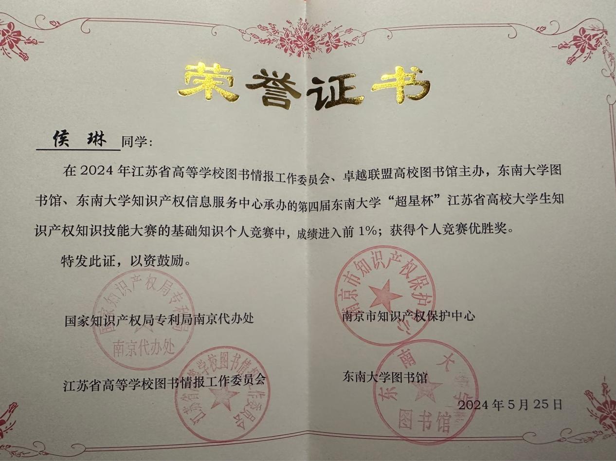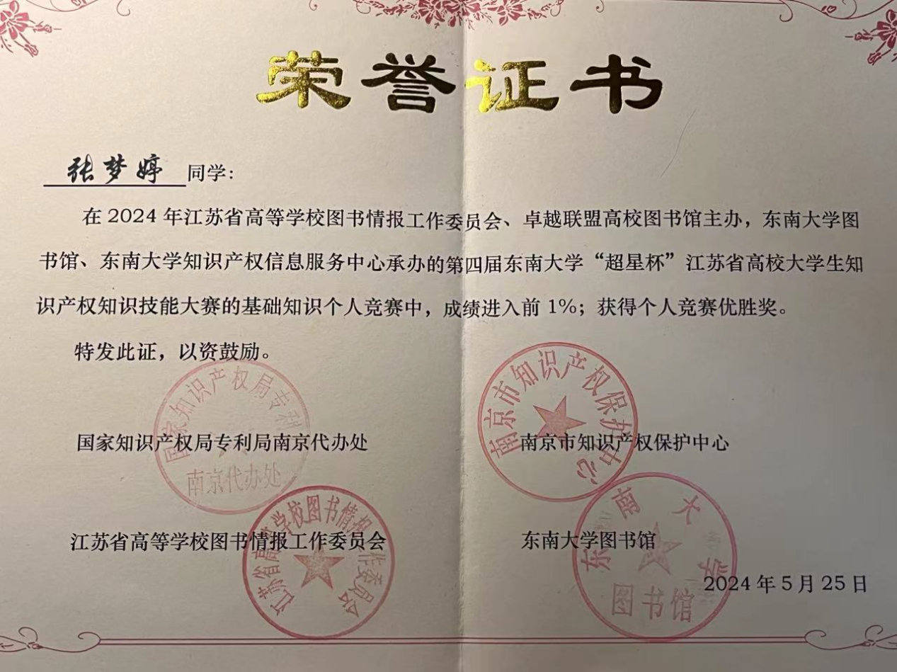 在今年会图书馆的积极宣传和组织动员下,来自经济管理学院、机械与电气工程学院的张梦婷、侯琳、吴尧运、畅刘媛四名同学在知识产权基础知识个人竞赛中,从90所本专院校的近6000名本专科生和研究生同学中脱颖而出,在获得优胜奖的前65位获奖选手榜单上,分别获得第12名、第24名、第48名和第49名,成为获奖学生数总榜并列第2名、民办高校第1名的好成绩!刷新了今年会近四年来参加本项活动的最高成绩!