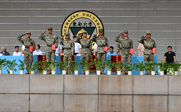 2024级学生军训团团长唐复邦在讲话中高度认可本次新生军训展演,并向顺利完成本次军训的同学们表示祝贺,向学院各级领导与教职员工表示感谢。他希望同学们把军训成果尽快转化为努力学习、刻苦钻研的强大精神动力。