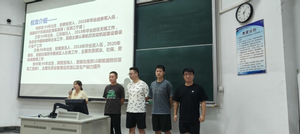 活动在同学们的热烈掌声中展开,严书记介绍了四位优秀校友的履历,同时代表学院党政对2024级新生入学表示热烈欢迎,提出殷切希望。何郑宝为现役军人,他结合自己求学和当兵入伍的经历与感悟,给大家提供了宝贵的意见;王哲结合自己在国企、民企、外企的工作经历,对就业选择和职业规划提出了中肯的意见。几位校友结合自己的亲身经历向同学们分享了自己在学校的学习与生活情况,鼓励大家在校期间就要做自己的人生规划,掌握正确的学习方法,培养良好的学习习惯,为以后的工作打好基础。现场气氛热烈,新生与校友们进行了互动。